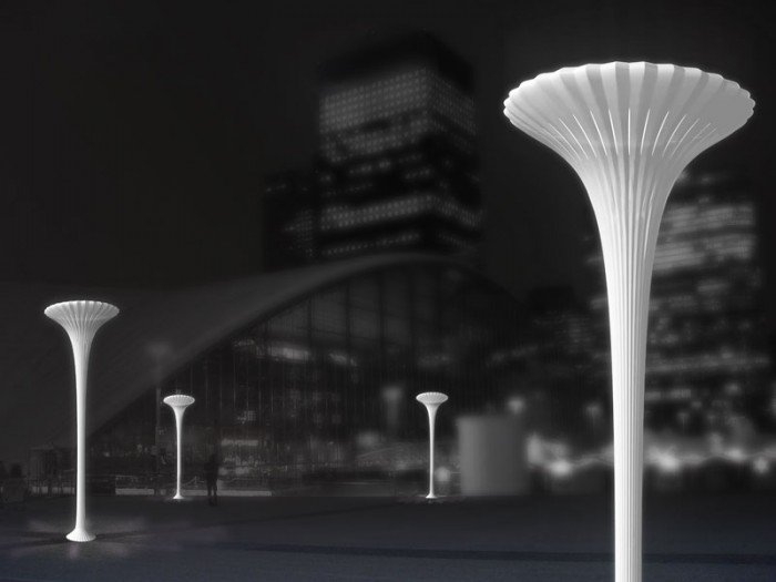 Ce projet est une ponctuation urbaine qui tend à nous extirper du macadam. Féço, comme son nom l'indique, est la métaphore d'une cristallisation de faisceaux lumineux. Comme si la matière de l'objet absorbait la lumière environnante pour en dégager de tout son volume une pure luminescence.